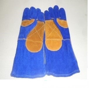 Găng tay da dài – da lộn mềm chống nóng EU (2 lớp màu xanh viền phối vàng) dài tới khủy tay, tăng bảo vệ tay